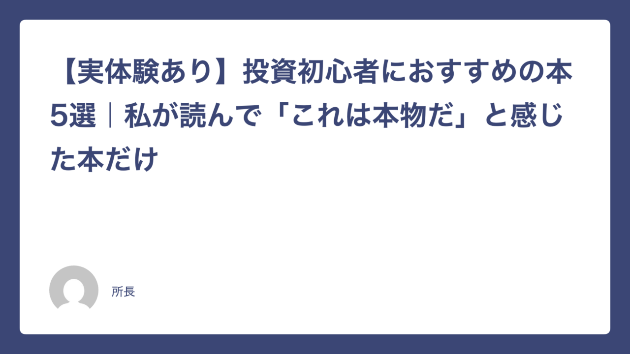 【実体験あり】投資初心者におすすめの本5選|私が読んで「これは本物だ」と感じた本だけ