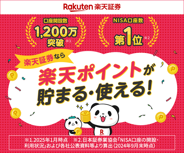 NISAを始めるなら証券口座の開設が必要です。私も利用している楽天証券はNISA口座の開設・管理料が無料で、楽天ポイントも貯まるため初心者にも使いやすい証券会社です。